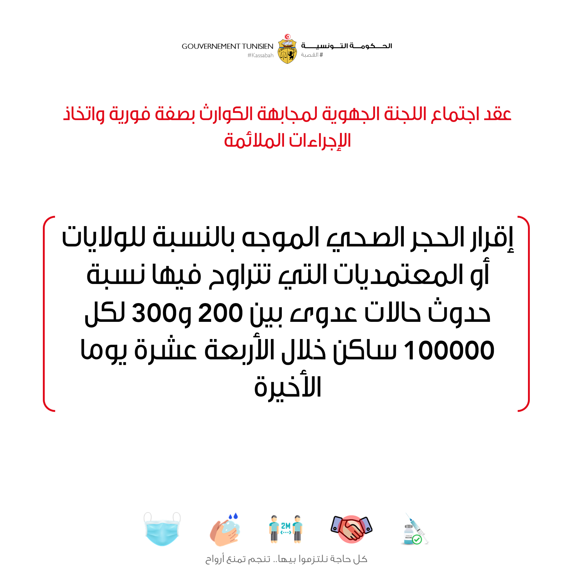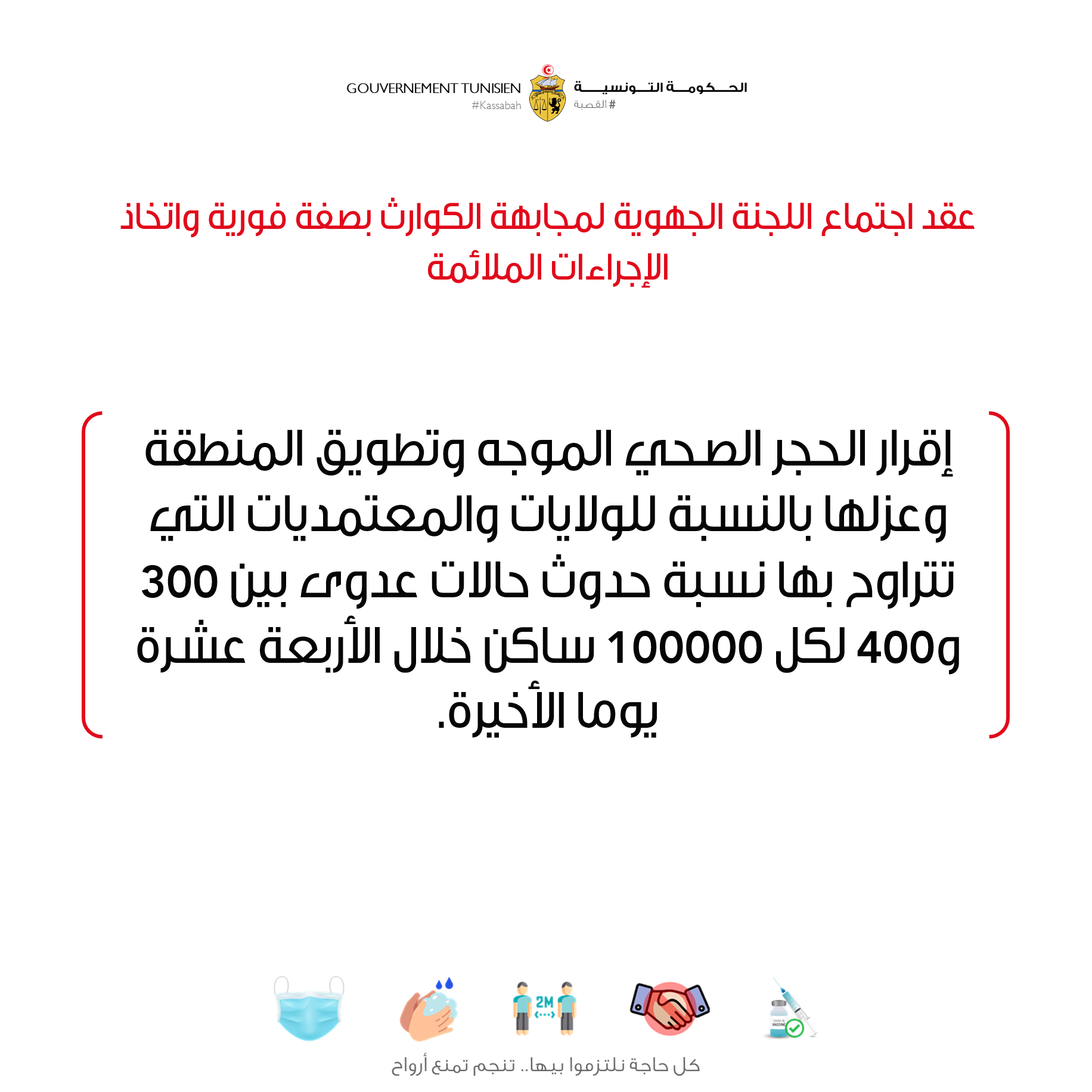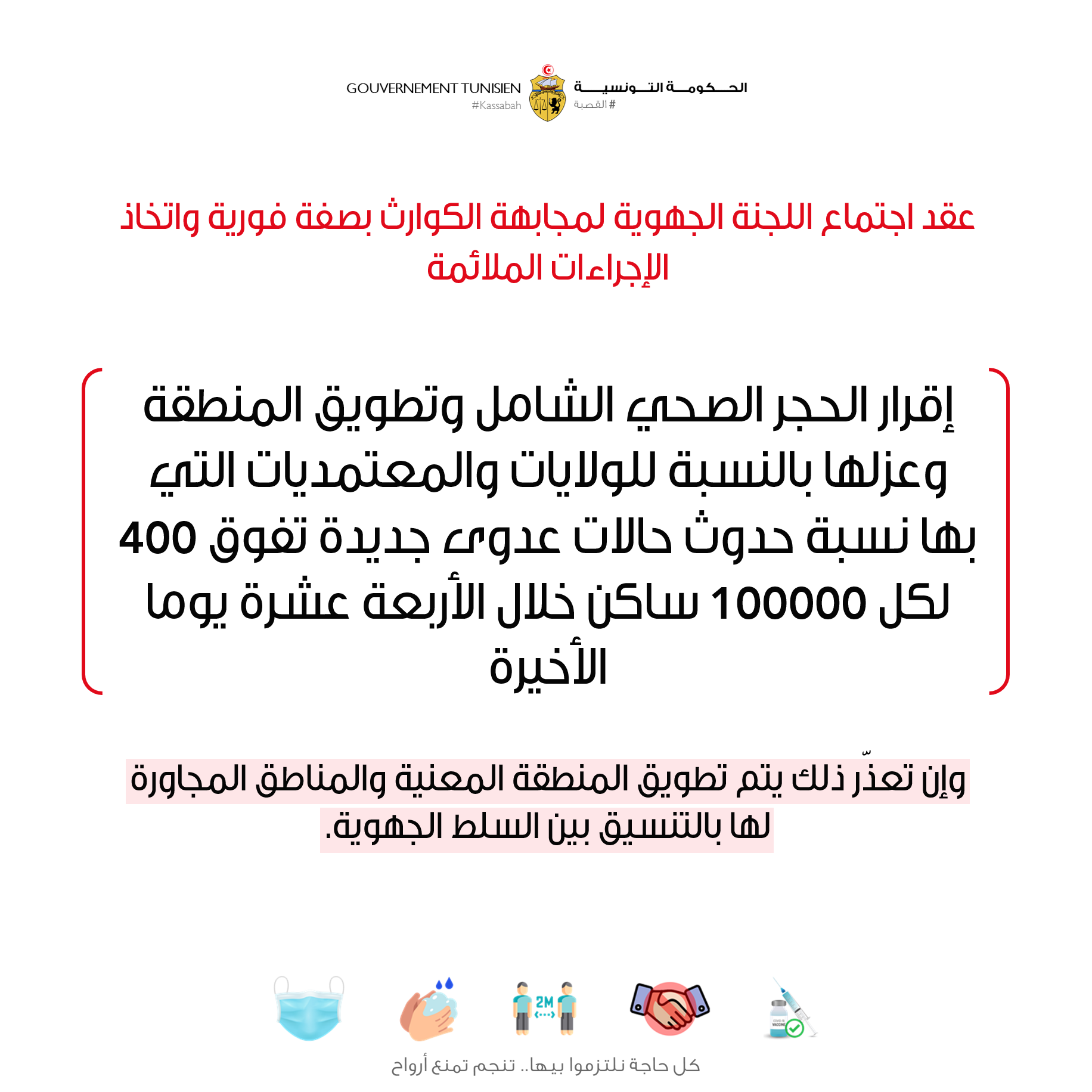 إجراءات الحجر الصحي الشامل بالمناطق التي بها حالات عدوى جديدة تفوق 400 لكل 100 ألف ساكن